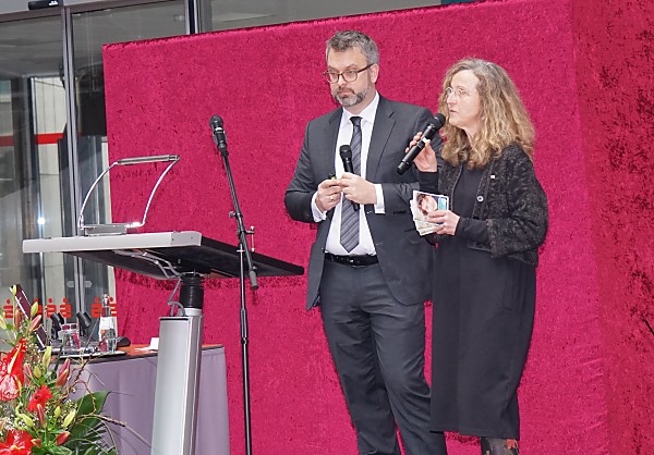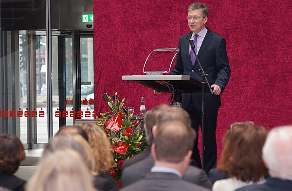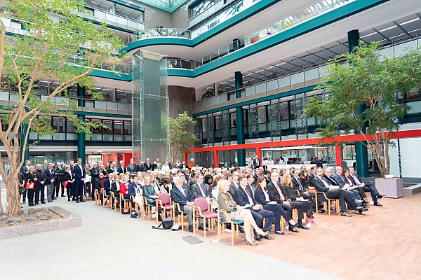 herzlich 150 Gäste im neu gestalteten Foyer der Hauptgeschäftsstelle am