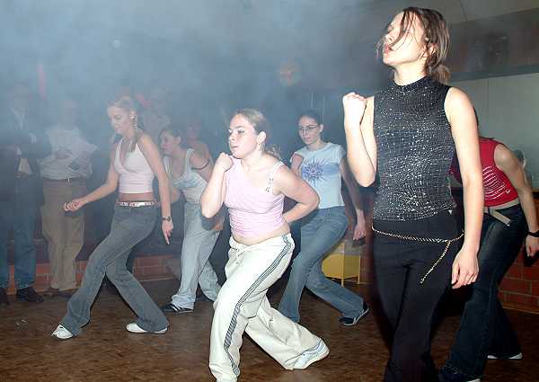 Junge Talente Die weiblichen Jugendlichen des Stadtteils hatten zur Eröffnungsfeier eine Tanzeinlage einstudiert, bei der die komplexe Lichttechnik durch künstlichen Nebel unterstützt wurde. |