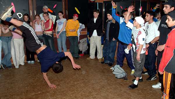 Breakdance HighLight der Veranstaltung war der Auftritt der Breakdance-Gruppe aus dem Jugendheim Pe12 (Rheydt).