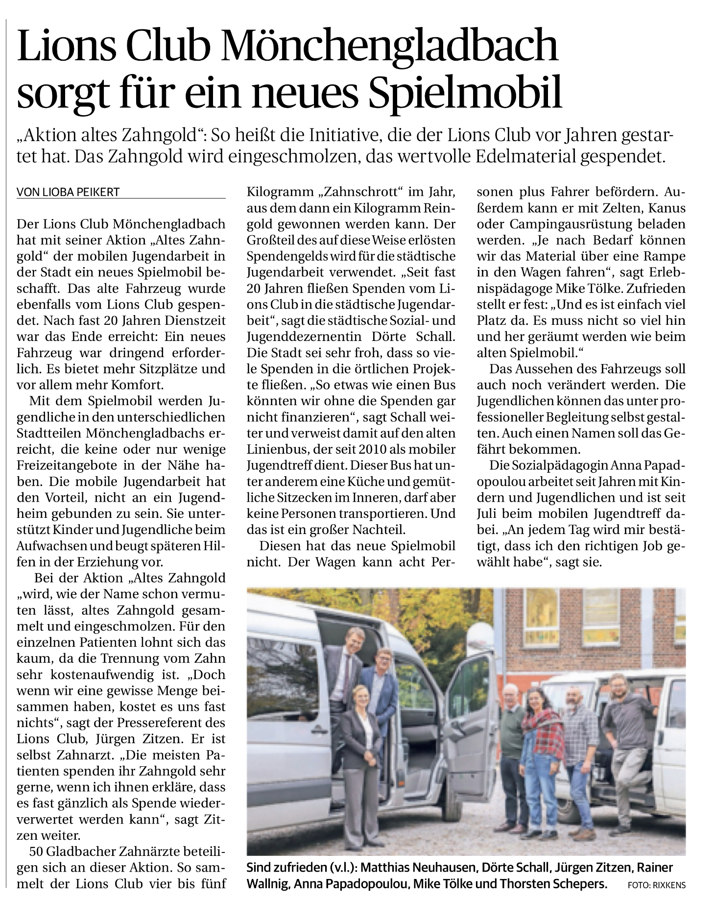 Das ist dank des Sponsors, dem Lions Club Mönchengladbach möglich. Dabei hilft